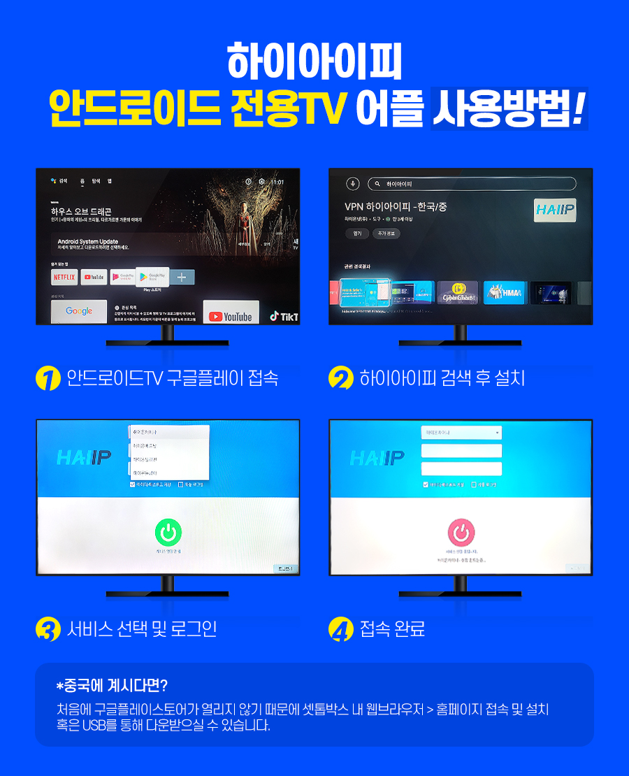 < 하이아이피 해외VPN서비스 안드로이드TV전용 앱 출시! >