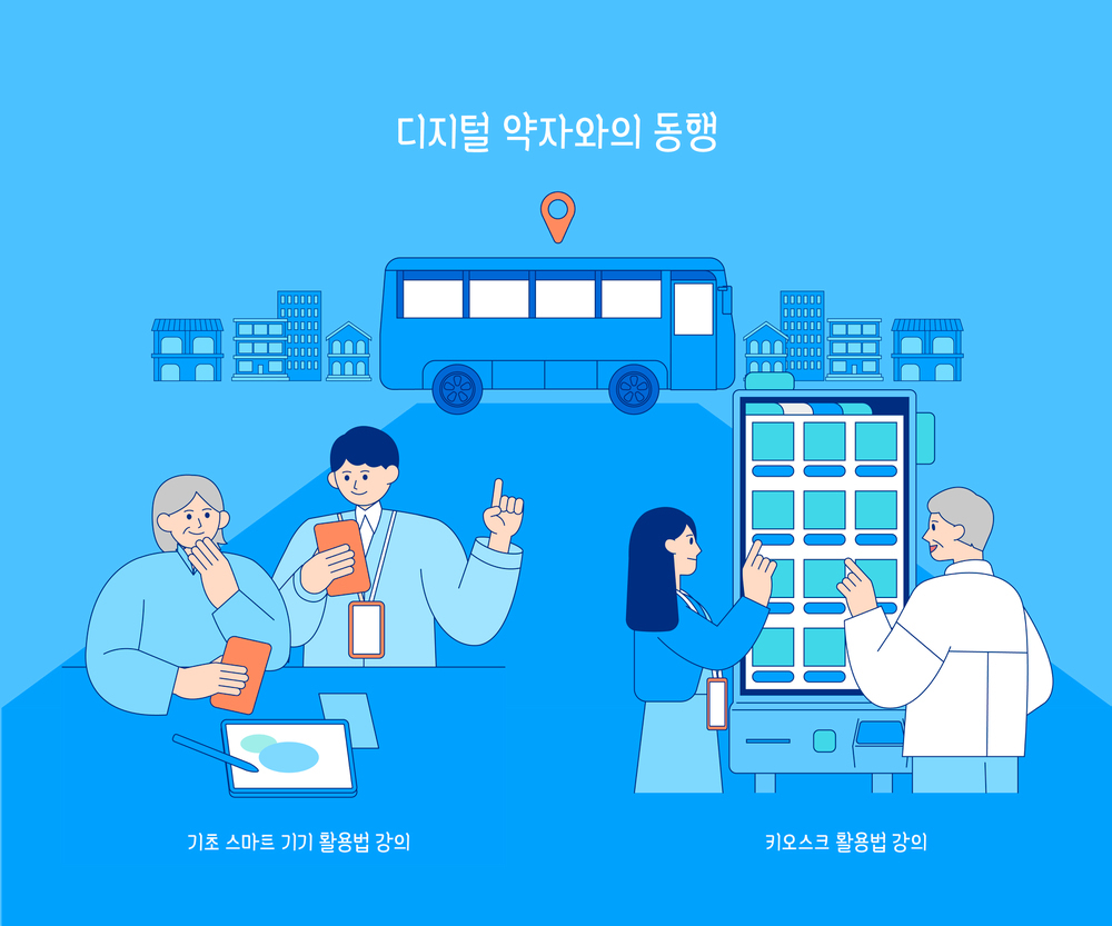 해당 사업은 경로당, 복지관, 문해교육기관 등에 이동수단을 갖춰 직접 찾아가 교육법을 안내하는데요. 일상 생활 속 자주 접하게 되는 디지털 기기에 대한 교육이 이루어지며 대표적으로 키오스크나 스마트폰 앱 등에 대한 교육이 실시됩니다.